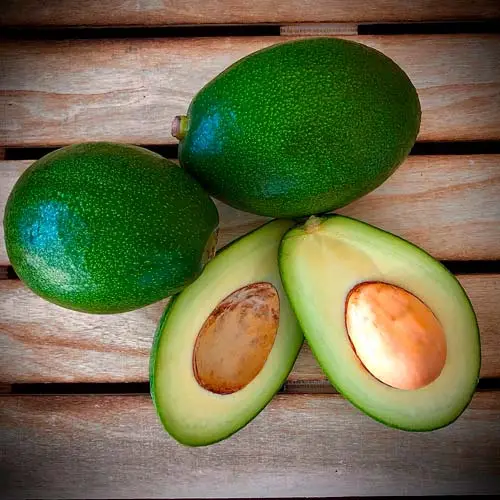 Este aguacate es característico por su piel verde brillante, delgada  y fácil de pelar oscila entre los 150 y 500gr.  Contiene una semilla grande a la que le rodea una pulpa de gran calidad que ofrece al paladar un sabor suave, de origen Californiano esta variedad se puede disfrutar durante toda la temporada de otoño (Octubre –Diciembre)  teniendo una larga vida de comercialización.